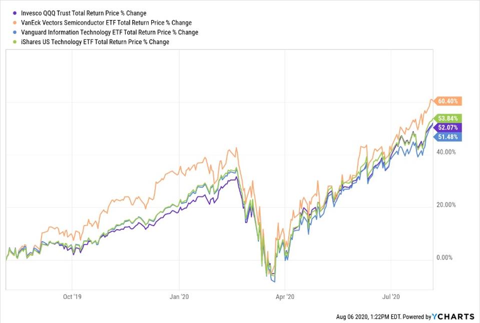 In 2020 the five largest technology ETFs in the US.